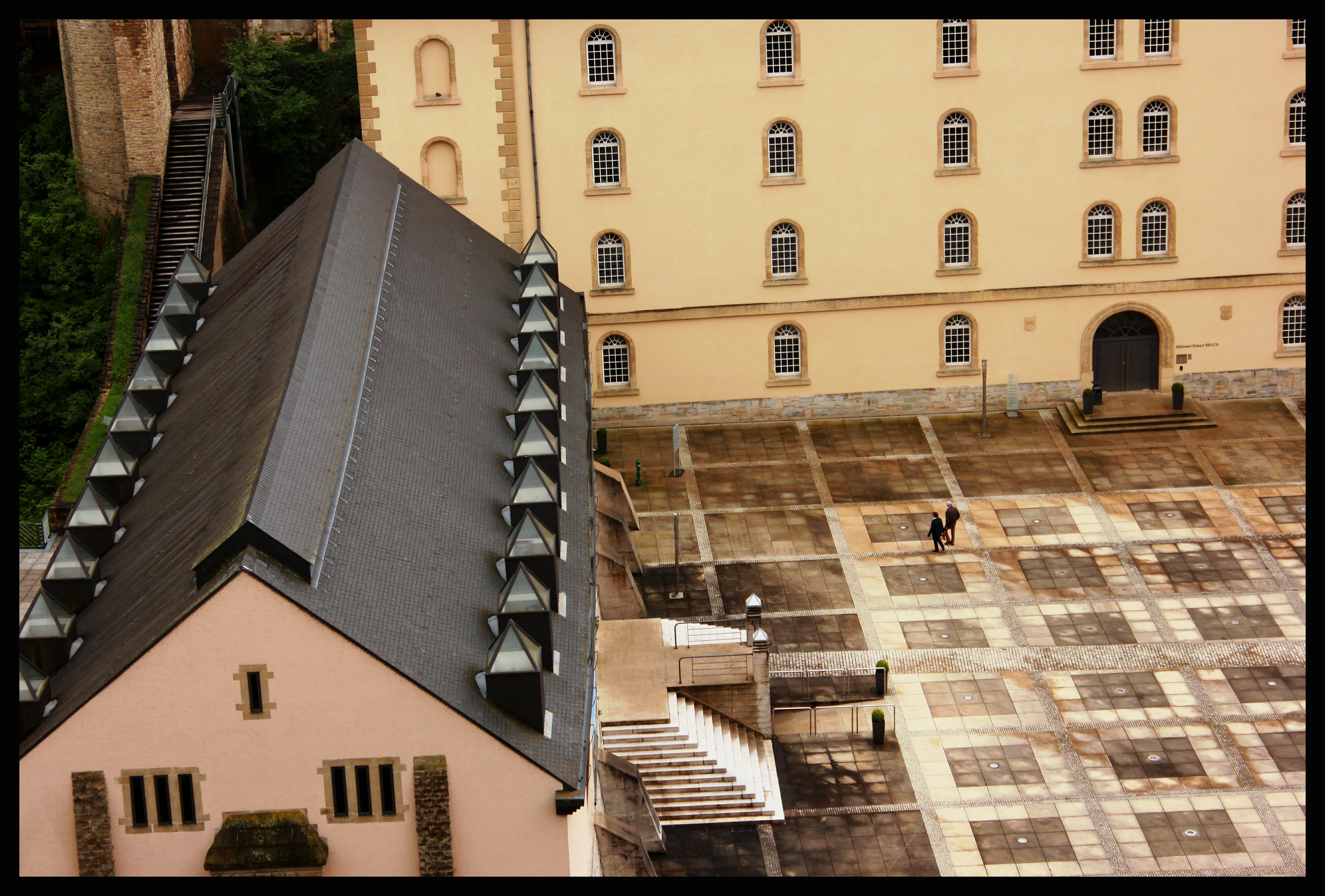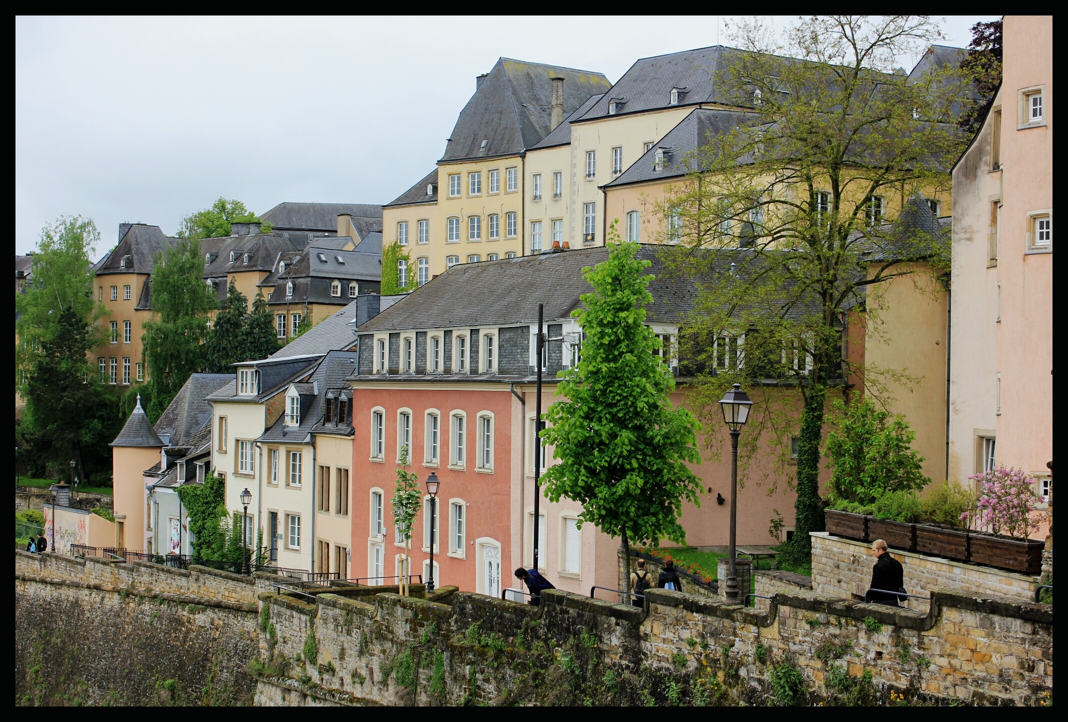 Chemin de la Corniche follows the narrow valley of the Alzette River along the old city walls of the fortifications built by the Spanish and Austrians in the 17th century.